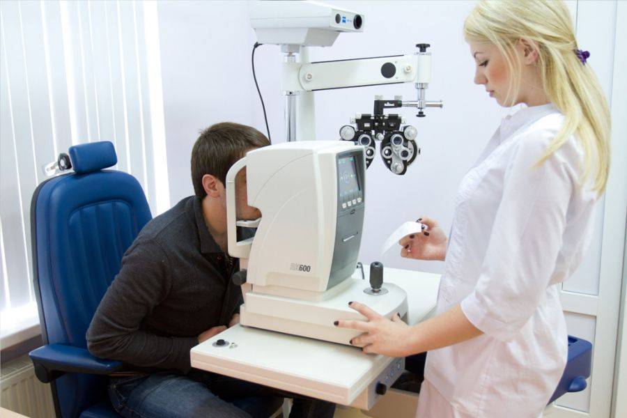 - Инструментальный осмотр глаза с применением щелевой лампы.