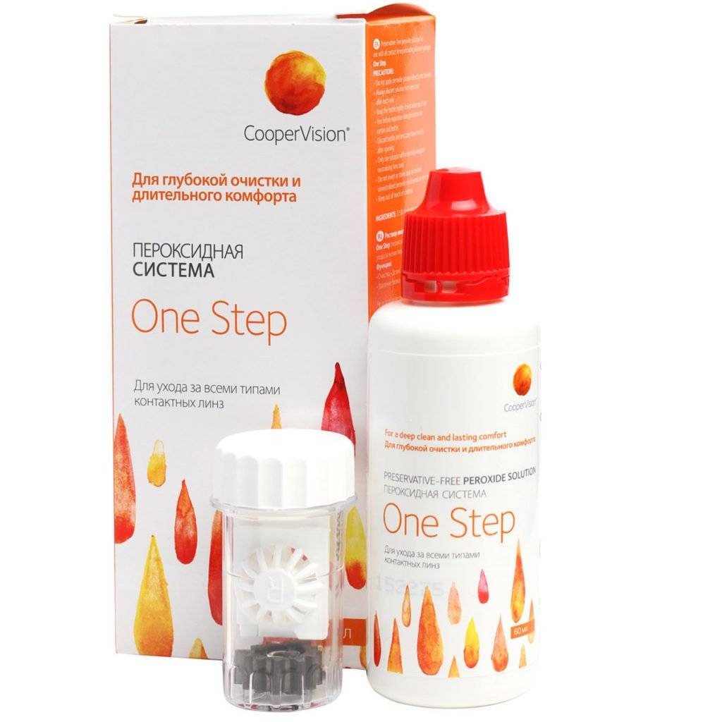 One Step представляет собой раствор с двухэтапной системой очистки: сначала происходит уничтожение микроорганизмов, затем нейтрализация жидкости и одновременное ополаскивание оптики. Пациенту ничего делать не надо, нейтрализация производится автоматически. Главное, не вынимать контактные линзы до окончания реакции, чтобы перекись полностью разложилась на водород и кислород. Они должны находиться в растворе не менее 6 часов.