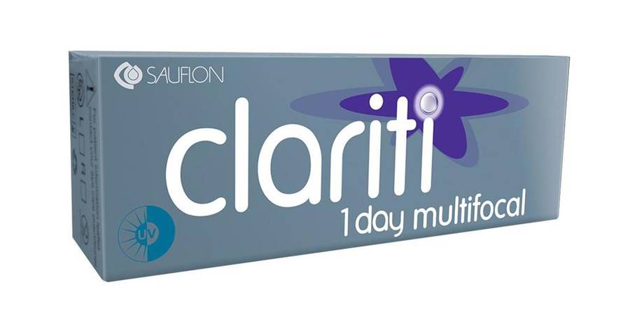 Clariti 1day Multifocal. Это — мультифокальные линзы с функцией защиты от лучей солнца. Тип: гибкие. Режим ношения: дневной. Замена изделия: через день. Предназначение: оптические.