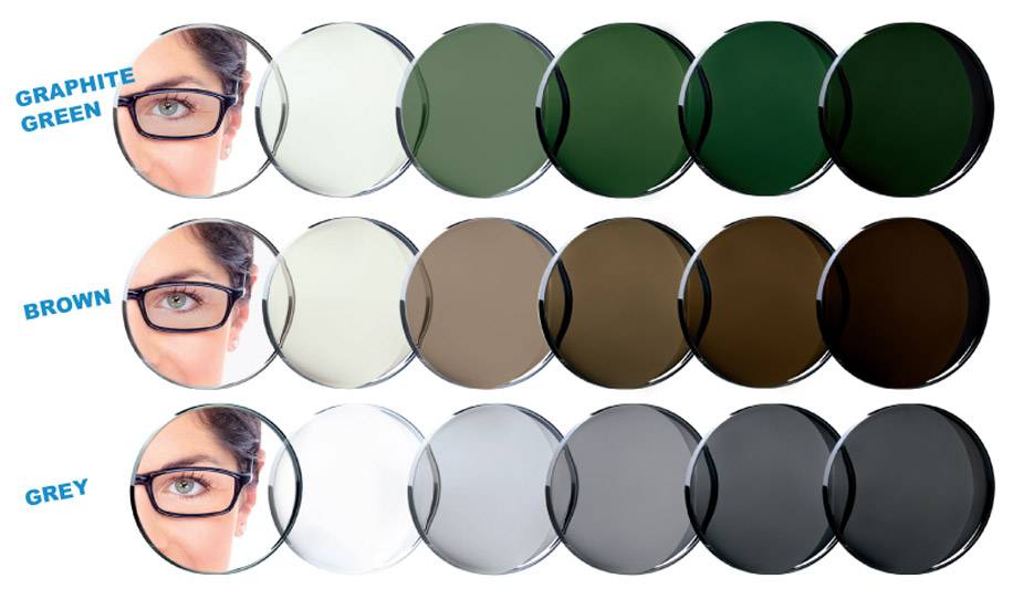 Современные линзы отличаются ударопрочностью, эластичностью и экологичностью. Универсальность нового материала обеспечивает хорошую степень затемнения при ярком освещении и абсолютную прозрачность в помещении. Цвет фотохромной оптики бывает либо серым, либо коричневым.
