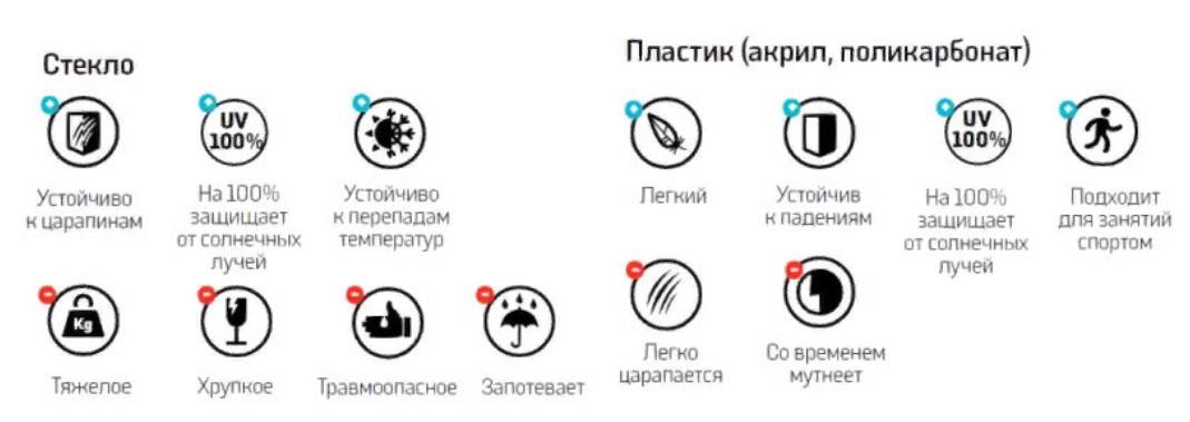 Среди преимуществ пластиковых из акрила либо поликарбоната можно назвать: