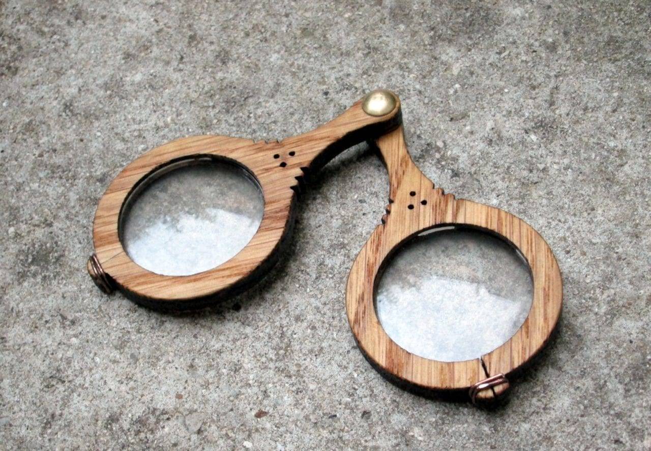 Состоятельные дамы заказывали у мастеров приборы, выполненные из благородных металлов и украшенные драгоценными камнями. Такие очки просто держали в руке перед глазами. Оправу изготавливали из дерева, металла, китового уса, кости, черепахового панциря.