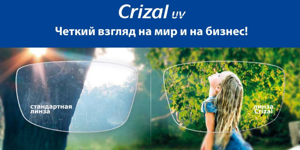 Большинство очков защищают органы зрения от прямых ультрафиолетовых лучей, однако, около 50 процентов излучения проникает в результате отражения от внутренней поверхности линзы. Очки crizal обладают дополнительным антибликовым покрытием с внутренней стороны.