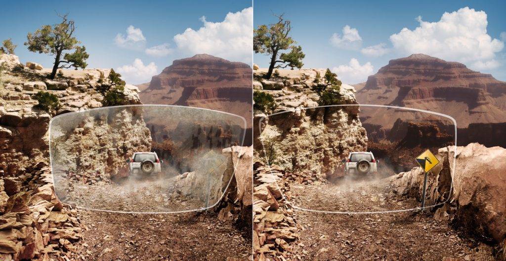 В однофокальных линзах сохраняется четкость изображения на периферии даже при высоких значениях оптической силы и учтены особенности формирования полей зрения при анизометропии. Прогрессивные линзы Rodenstock Road характеризуются очень высокой стабильностью изображения, поэтому при быстром изменении направления взгляда в критических ситуациях нет потери четкости. Экстремально большие зоны для зрения на промежуточных средних дистанциях гарантируют полный обзор внутри автомобиля, включая навигатор.