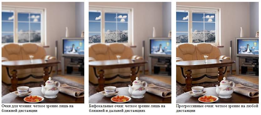 - прогрессивными (современная модификация бифокальных линз, у которых переход диоптрий заложен внутри линзы, и внешне стекло очков абсолютно гладкое, это более эстетично).