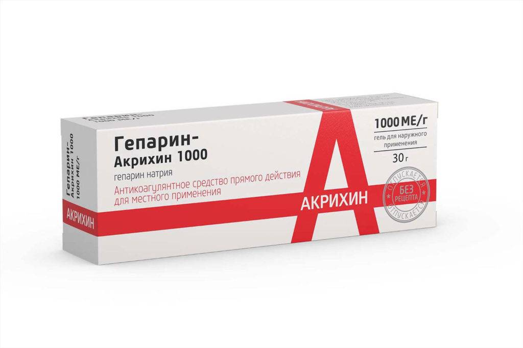 Гель Гепарин-Акрихин 1000 выпускается в алюминиевых тубах по 30 г. Стоимость 230-255 рублей за одну упаковку. В состав входит гепарин натрия (действующее вещество), а также добавки: