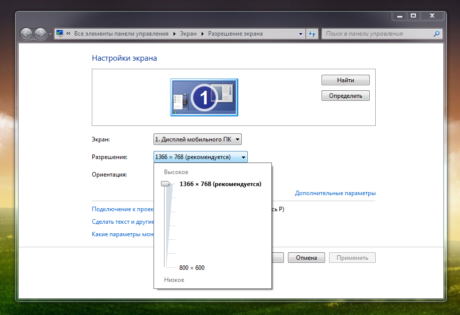 В открывшемся меню настроек необходимо выбрать нужное разрешение. Если вы не знаете показатель, под который рассчитан ваш дисплей, установите рекомендуемый системой вариант.