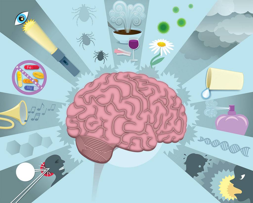 - Избыточное раздражение слуховых, обонятельных рецепторов;