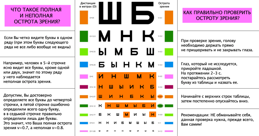 Правила проверки остроты зрения