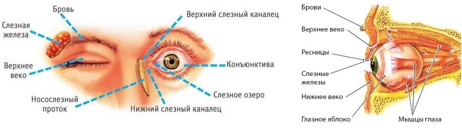 Веки — это основная структура, участвующая в акте моргания. Слезные железы постоянно выделяют жидкость, которая попадает в мешок конъюнктивы. При сокращении мышц влага попадает на поверхность глазного яблока, после чего распределяется при закрытии век и движении глаз. Излишки жидкости удаляются через носослезный проток.